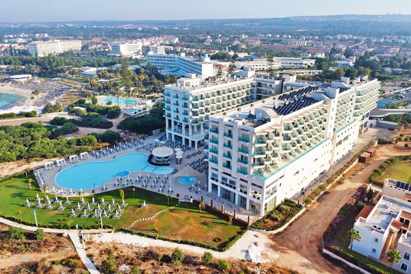 The hotel is located in the Cypriot resort of Ayia Napa, right next to the popular Nissi beach. Named after the nearby islet, it stretches for approximately 500 metres and boasts a clean water certificate. The resort offers swimming pools (outdoor and indoor) and a wellness centre. The main swimming pool is located outside on the terrace and also includes a children’s section and a pool bar. Guests can visit the large ancient Greek-style aquapark, which is just 3 km from the hotel.