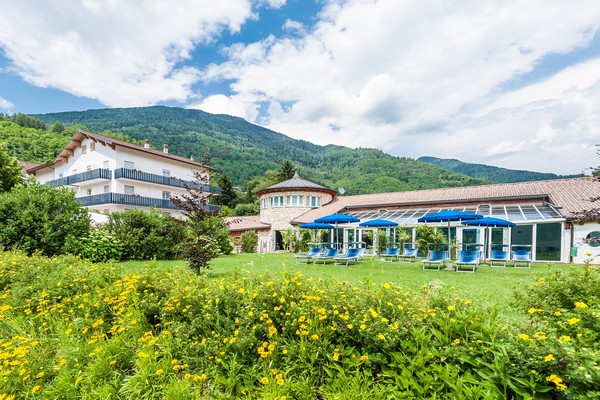 The hotel is located in an idyllic location on the shores of Lake Levico (Italian: Lago di Levico) in the town of Levico Terme in the north of Italy (Dolomites). The lake is suitable for fishing, boating or recreational swimming, and is one of the warmest lakes in southern Europe. The area offers swimming pools, a wellness centre, a spacious relaxation park with a hot tub and tennis courts. The main thermal baths (Terme di Levico) are within easy reach (approximately 1 km from the hotel).